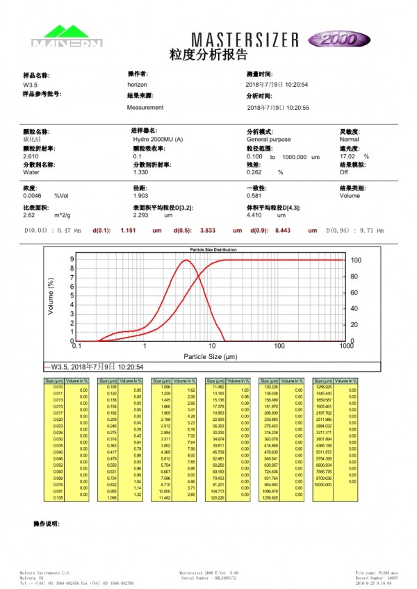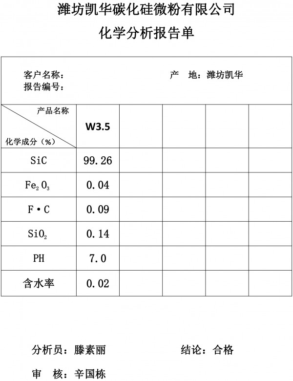 W3.5綠碳化硅微粉呈綠色,晶體結構,硬度高,切削能力較強,化學性質穩定,導熱性能好。還用于半導體材料,高溫硅碳棒發熱體,遠紅外源基材等。